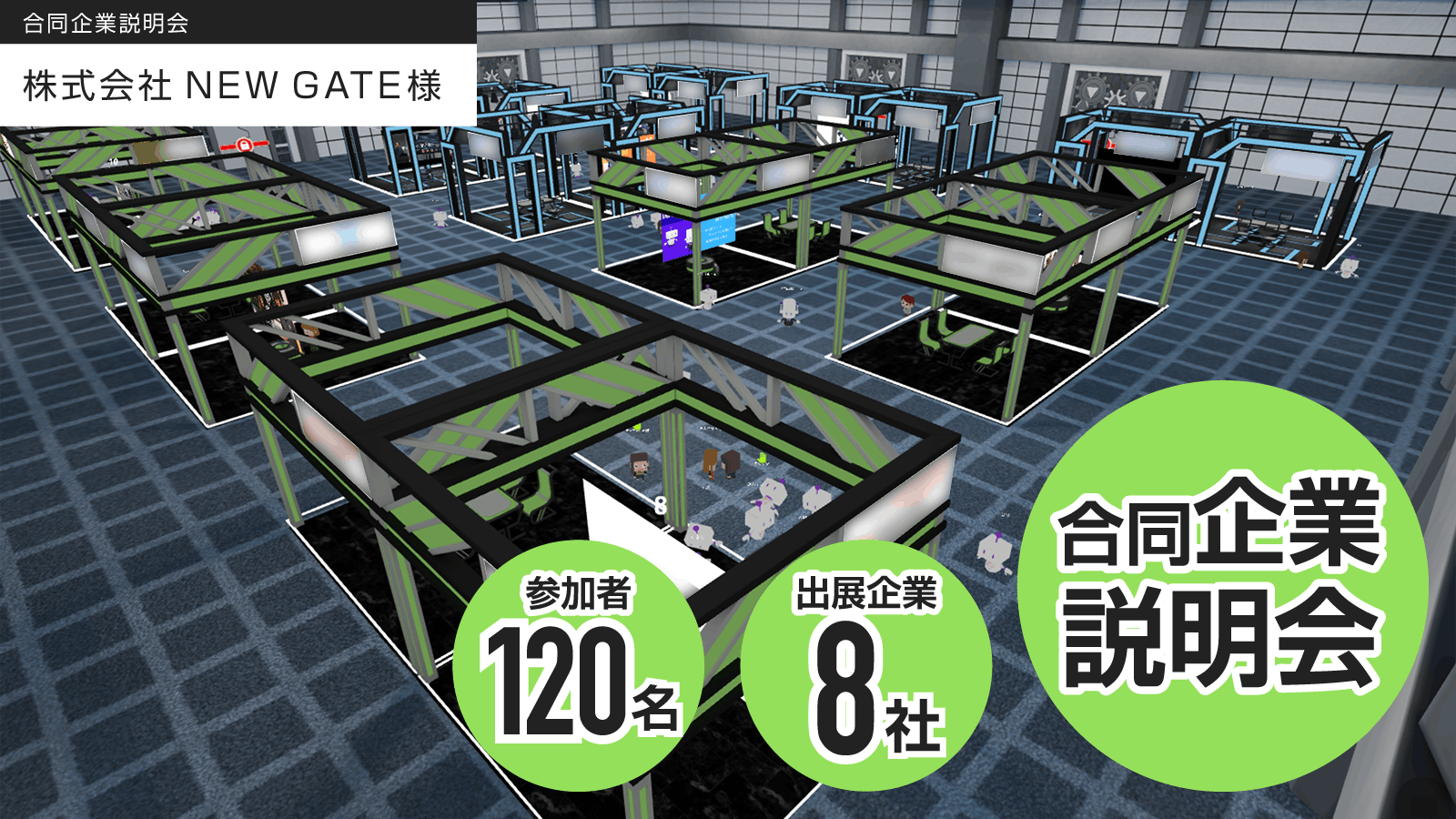 【事例サマリー】 主催企業:株式会社NEW GATE 用途:メタバース就活イベント 開催形式:オンライン(メタバースプラットフォームV−expo ) 参加学生数:約120名 出展企業数:8社 実施目的...