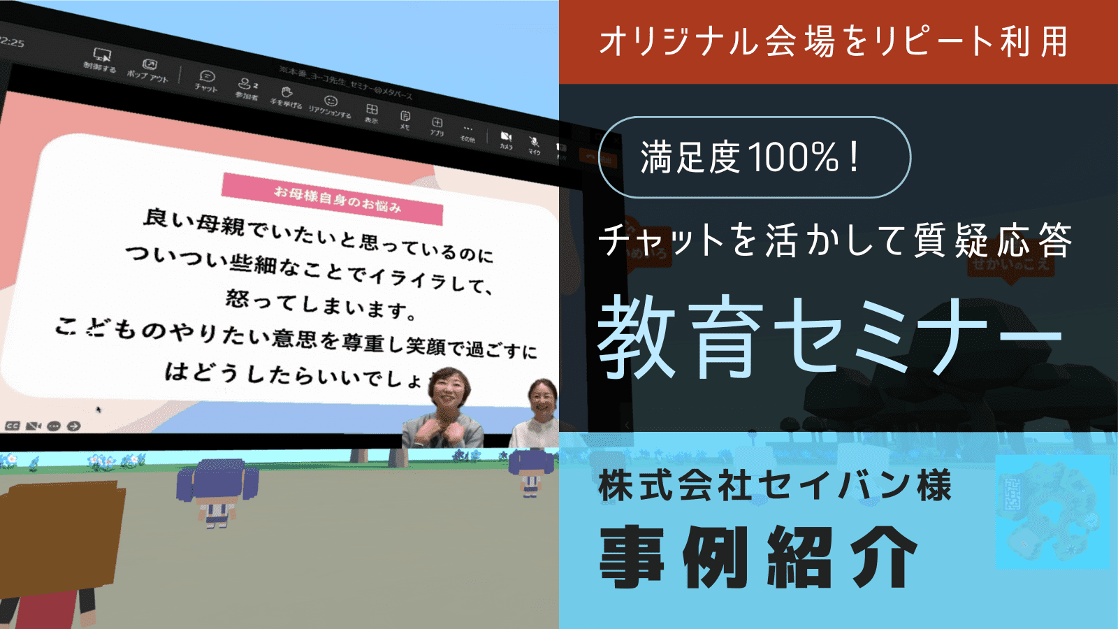 本記事では、オリジナルのメタバース空間“Soda!Soda!アイランド”で教育セミナーを開催されました株式会社セイバン様にお話を伺いました。
